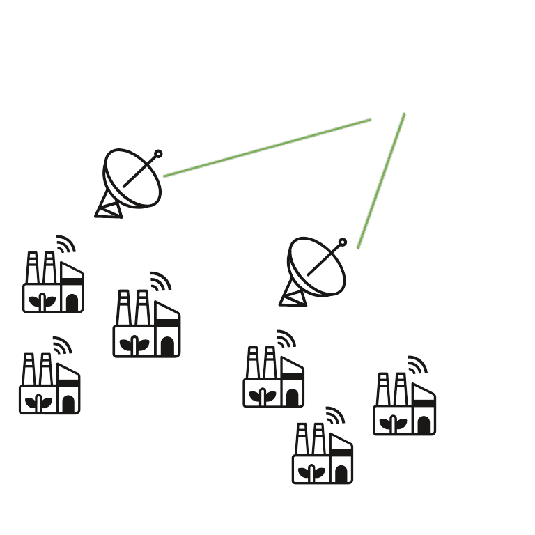 - Antenas Omnidirecionais - Cobertura 360°. Uma única antena para cobrir toda uma localidade; Aplicável para áreas produtivas de médio porte (600Ha); Cobertura mais limitada, de até 1,3 km.