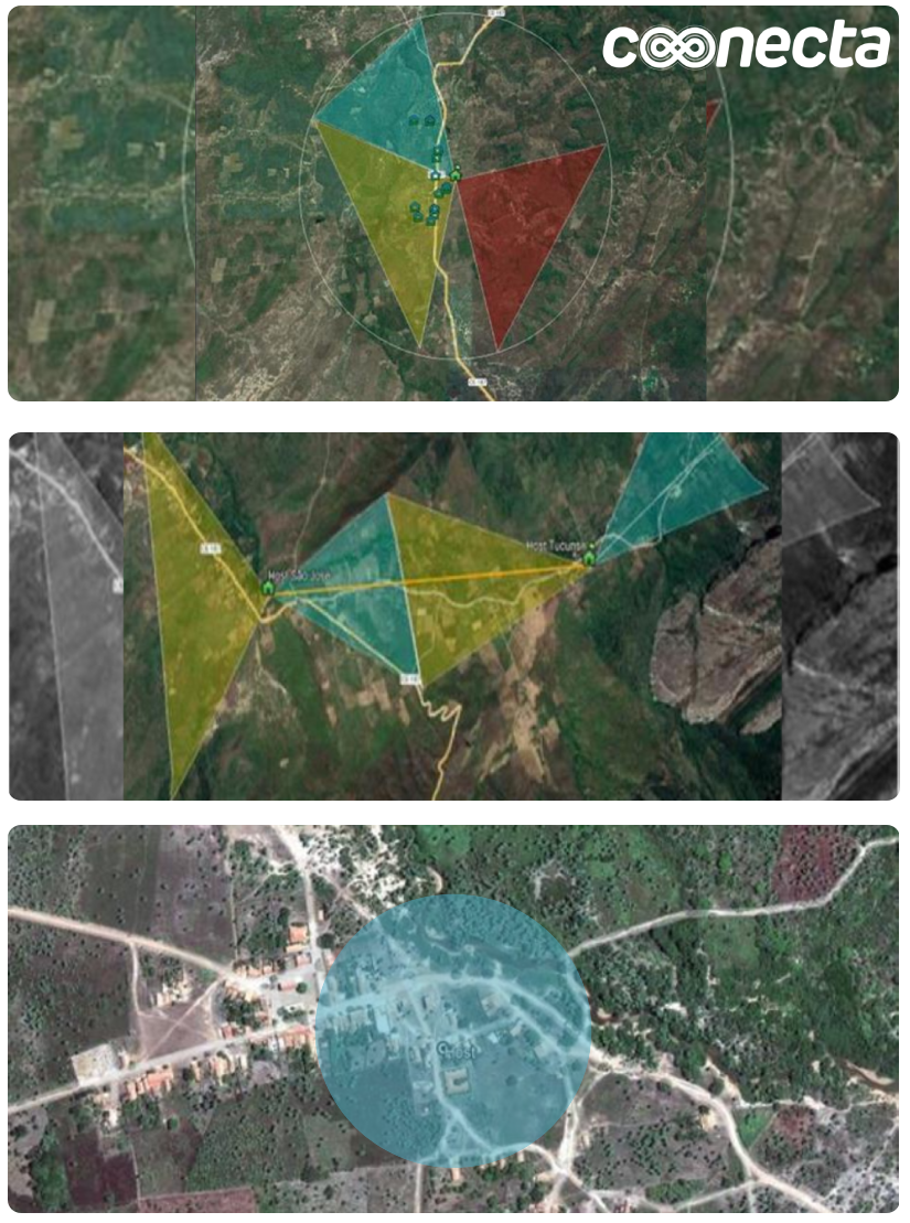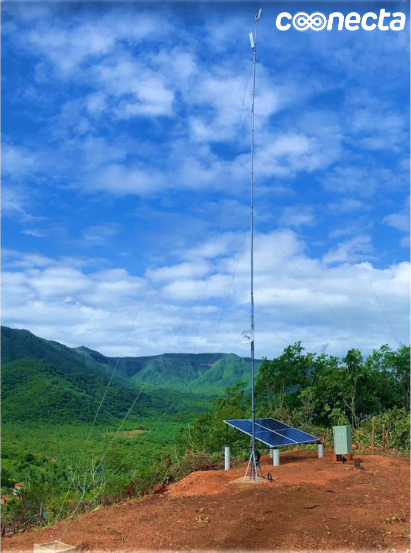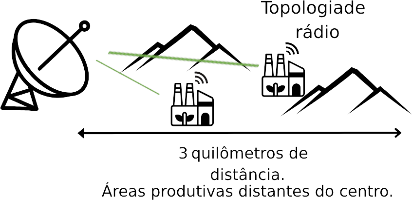 - Conexão entre sites - Ampliação da área de cobertura, utilizando antenas Ponto a Ponto; Possibilidade de utilização de placa solar, para ampliar cobertura para novas regiões; Distâncias de 10 a 15km, dependendo do equipamento e banda a ser trafegada.